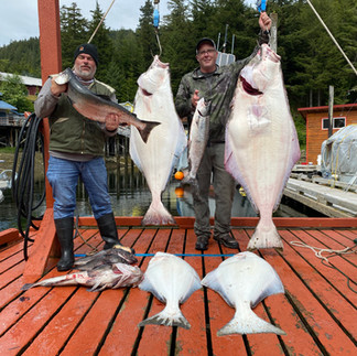 Halibut still doing very well, we did have a few days where they slowed down. Jerry from Boise got his first over 100 lbs this week. He has been here over half a dozen times, and helped land several in his boat but this was the first time it was on his rod.